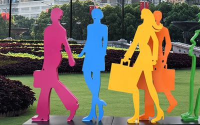 剪影雕塑,看的就是個(gè)輪廓!把你想做的東西(人、動(dòng)物、樹啊啥的),簡化成影子形狀。材料選擇多:不銹鋼、耐候鋼(喜歡生銹那種質(zhì)感)、玻璃鋼、鍍鋅板、鐵板都成。最后還得靠噴漆,給它們打扮上顏色。